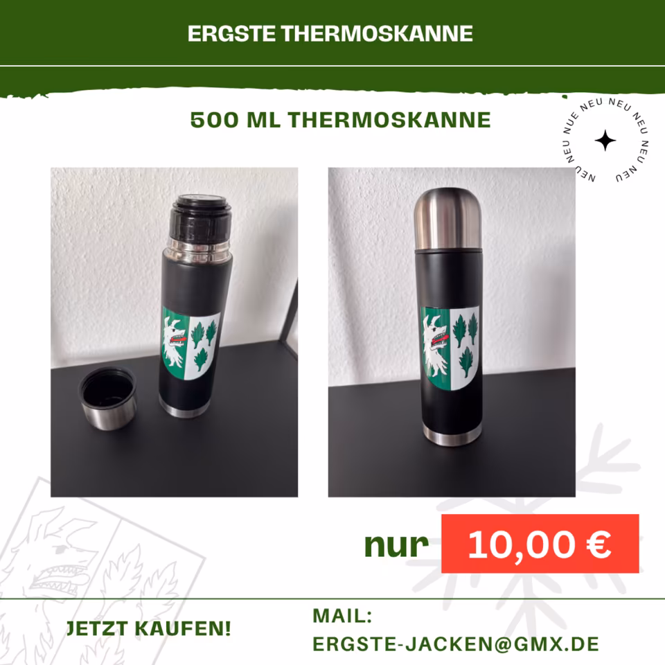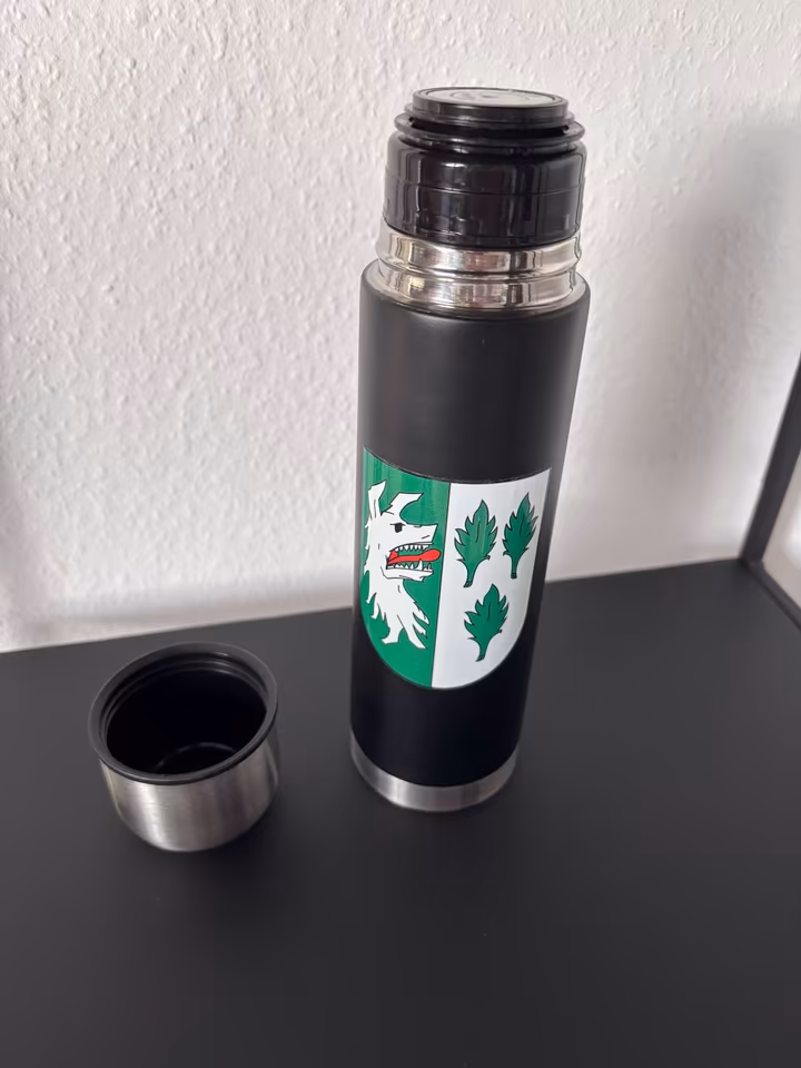 Hier bekommst du eine hochwertige Thermoskanne mit dem traditionellen Ergste-Wappen als Hingucker.