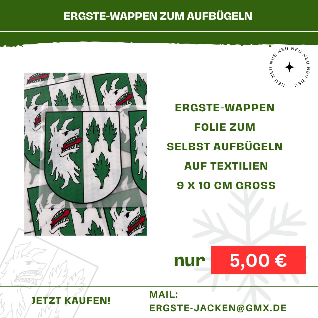 Ideal für Textilien aller Art – die hochwertige Bügelfolie mit dem charakteristischen Ergste-Wappen verleiht Kleidung, Taschen oder Accessoires eine individuelle Note. Mit einer Größe von 9 x 10 cm passt das Patch perfekt auf T-Shirts, Jacken, Rucksäcke und mehr. Das Aufbügeln geht ganz einfach selbst zu Hause.